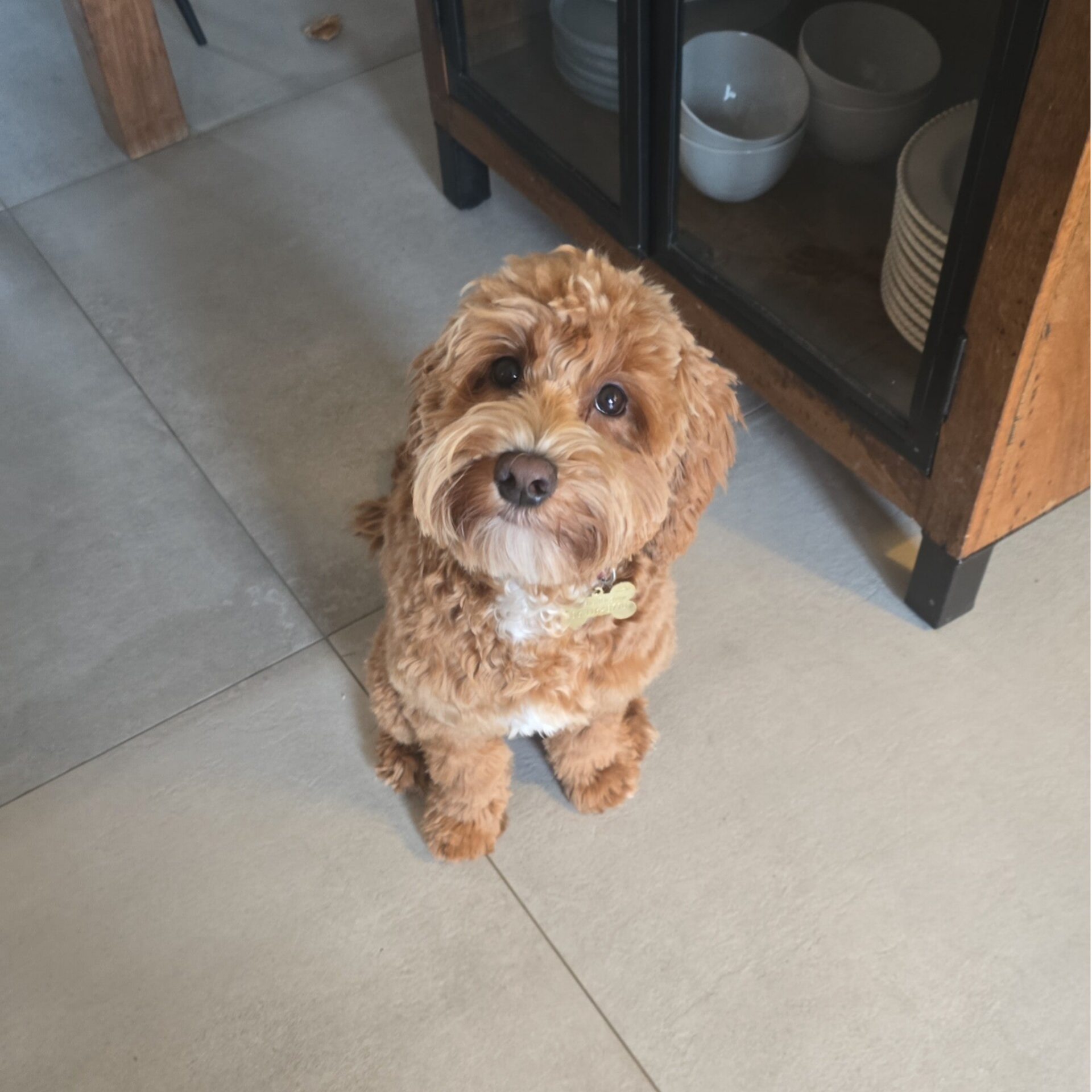 Nouska heeft een mooie rode kleur en is een mini Australian Labradoodle.